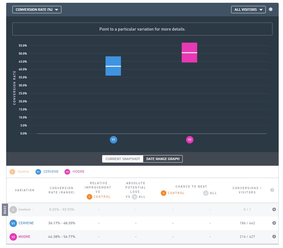 Všade sa rieši, ktorá farba buttonov je lepšia. Ja som si vybral že vyskúšam modrú vs. červenú. Vyskúšal som to na pár dní cez VWO. Celkovo 869 ľudí, čož nie je úplne MEGA ale je to myslím výpovedné. Modrí vyhrali.